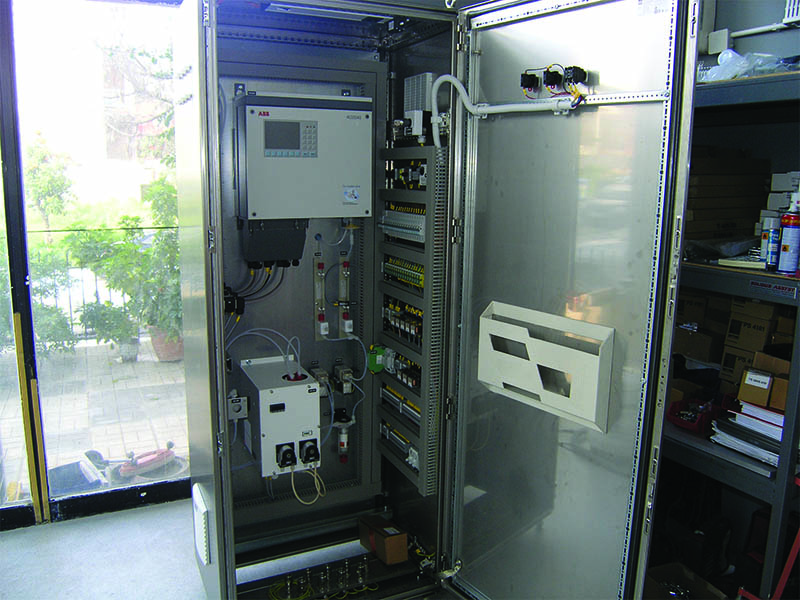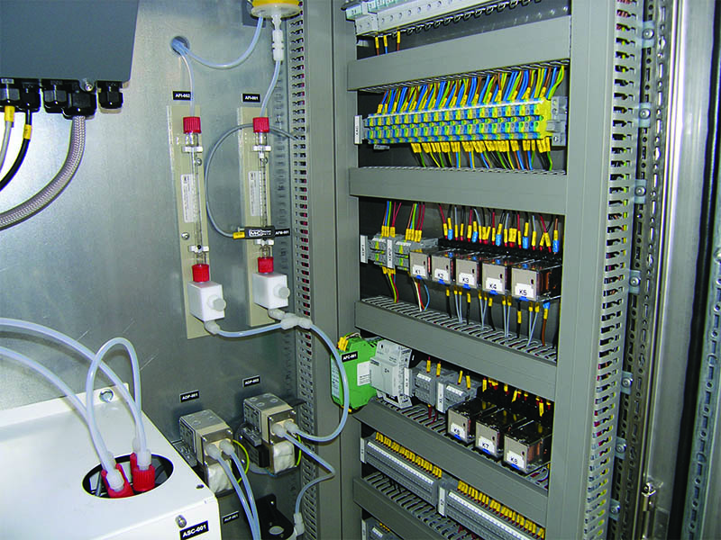 Analytical system cabinet measuring 4-point CO from the top of four dry slufge silos